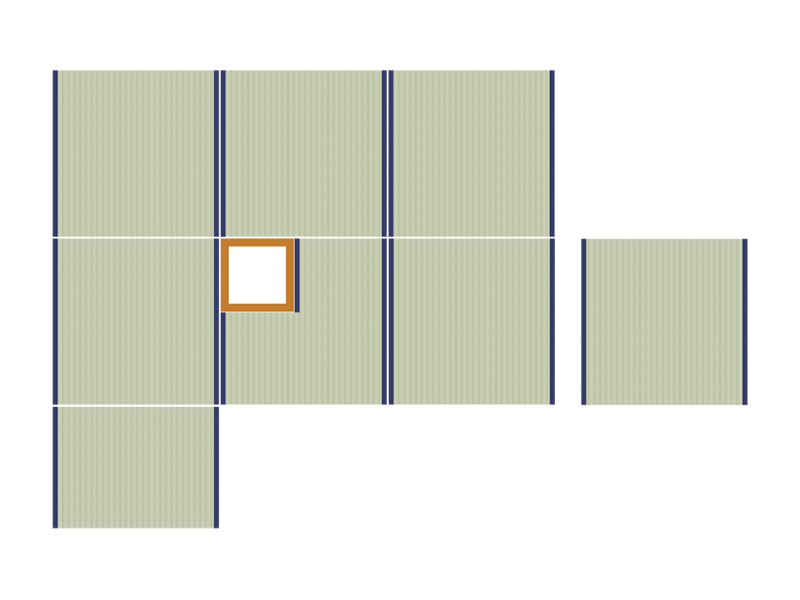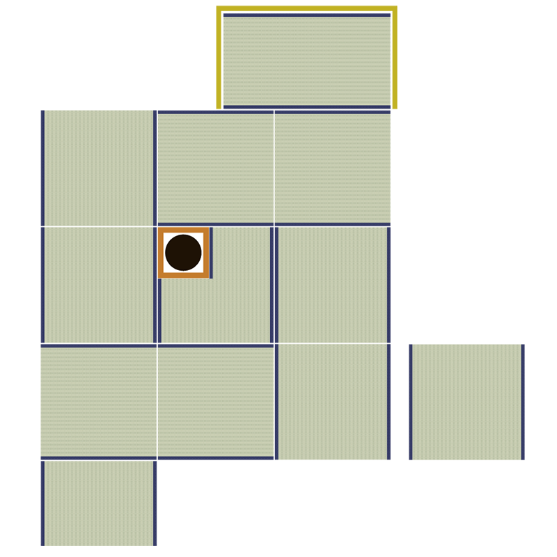 9 half tatami mats + Ro (a frame of hearth) + a SadÔguchi (doorway) tatami + a Fumikomi tatami
