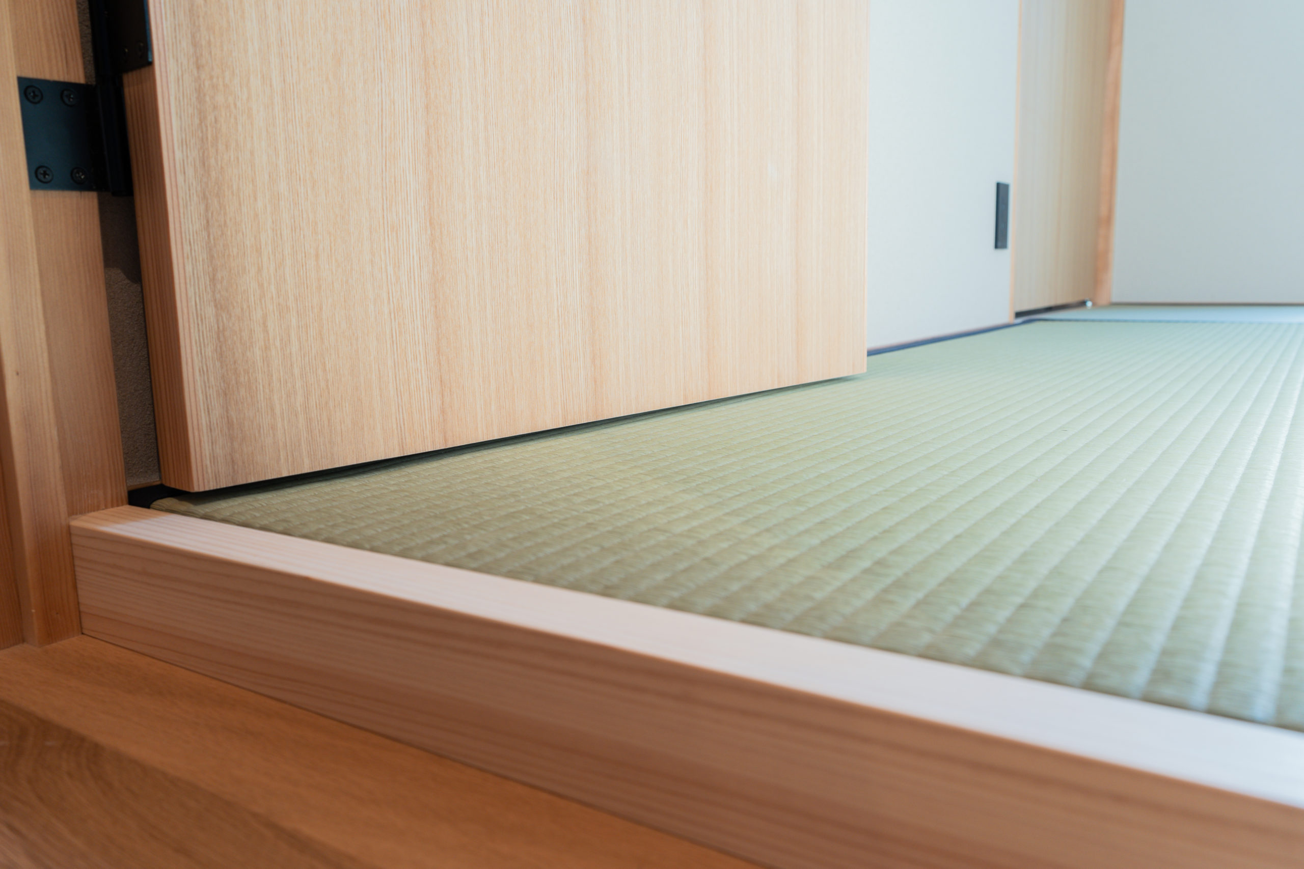 We were able to safely install the tatami on top of the wooden flooring.